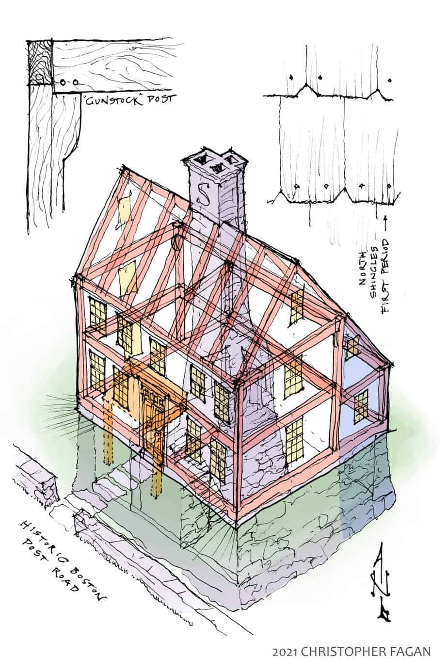 As Chris eloquently explained, “Historic preservation does more than honor our history. It enriches our modern way of living. The Nathaniel Pond House, standing on its original foundation at the gate of Darien is an elegant mixture of Dutch and English First Period colonial architecture. Our family is honored to receive this important house into our hands and will start a new chapter in its life as a treasured home, a place for the arts, and an asset to our community. We are beginning to carefully restore this structure in an authentic manner. As an architect, I hope not to leave my personal mark on the Nathaniel Pond House, but that the home leaves its imprint on us. I want to share the lessons that this home can provide for our modern building culture.”